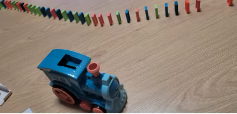 تسقط الدومينو بشكل مثالي في كل مرة. القطار يتحرك بشكل جيد حتى على السجادة، إنه عملي جداً 👌