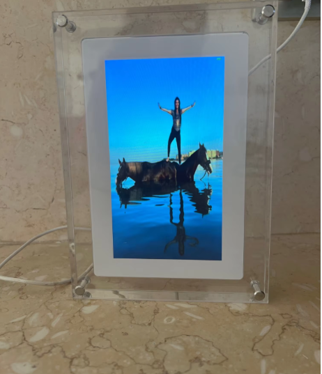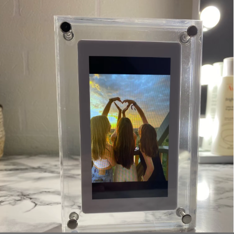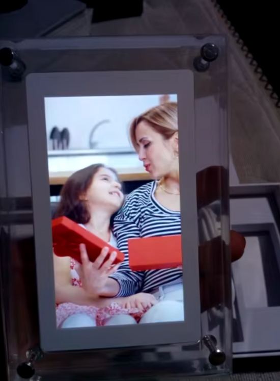 The frame has an internal memory of 8 GB, which can hold several hours of video depending on the quality.