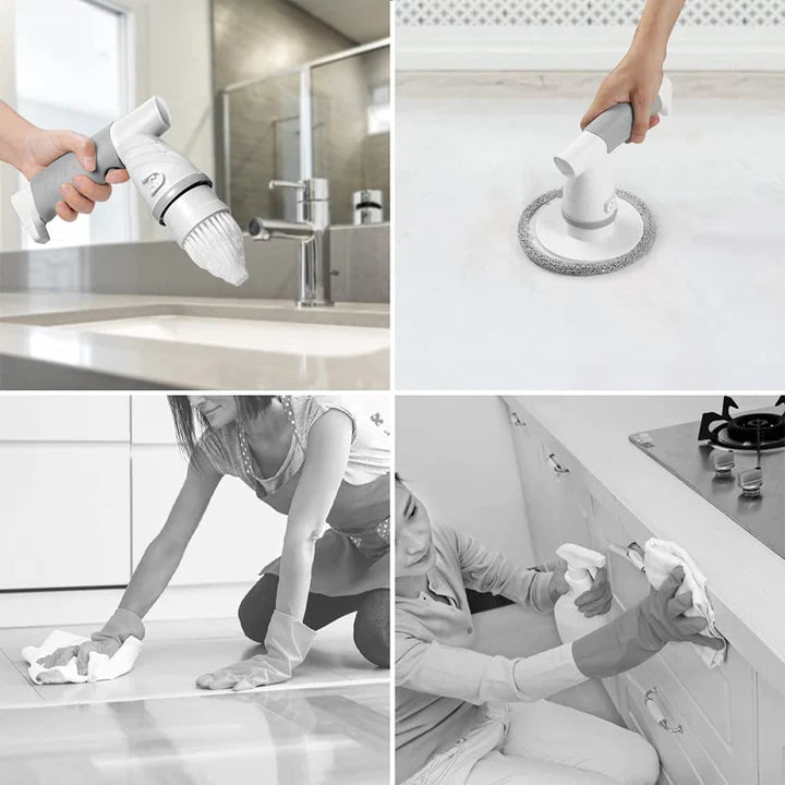Štetec je dodávaný so 4 vymeniteľnými hrotmi, z ktorých každý je navrhnutý pre konkrétny typ povrchu: mäkký pre krehké povrchy, stredný pre bežné škvrny, tvrdý pre odolné nečistoty a špeciálny štetec na škáry a rohy.